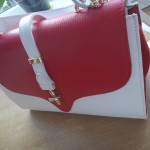 Se dă o frumoasă geanta de la Manier.ro, din piele naturală de culoare alb cu roşu, şi se cere să se găsească câteva idei de ţinute cu care s-ar potrivi. Încep aşa, că tot am visat numai teste de matematică azi-noapte (nu ştiu de ce, am rămas traumatizată din liceu cred).