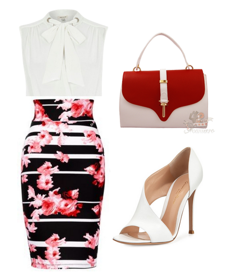Ţinută de zi – poate fi purtată la serviciu sau chiar şi la o întâlnire, fie ea romantică sau profesională. Cred că este preferata mea, îmi place la nebunie ideea de a asorta geanta cu imprimeul de pe fustă.