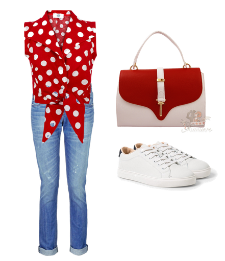 Ţinută casual – geanta poate fi purtată şi cu nişte piese de îmbrăcăminte comode, pentru un outfit jucăuş. O pereche de blugi, nişte adidaşi şi o bluză retro fac pereche bună cu geantă alb cu roşu pentru o plimbare prin parc sau un picnic.