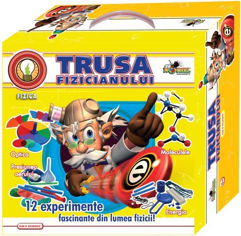 Cu trusa fizicianului poţi face experimente legate de presiunea aerului, energie, molecule şi optică. Trusa electronistului conţine 4 activităţi legate de motorul electric, sonerie, codul Morse şi super motoare.